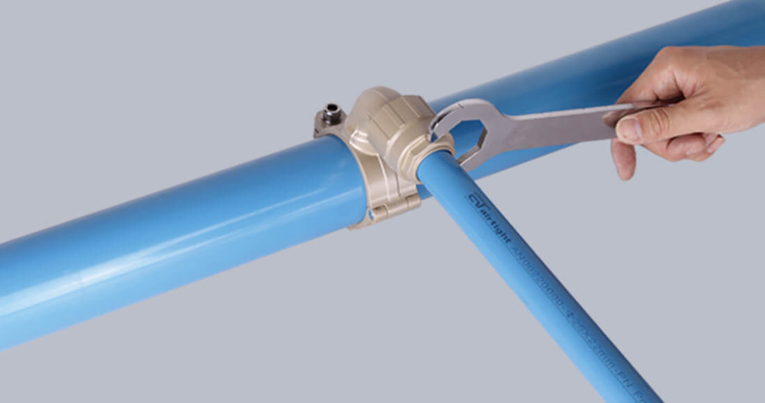 Airtight快裝管路 系統經過國家檢驗中心壓力檢驗認證, 根據不同管徑設計不同的鎖緊結構,確保管路連接安全可靠,接頭采用主動密封,確保零泄露